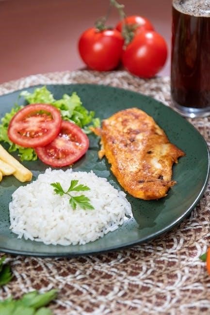 The Kambrook Rice Cooker Instructions PDF highlights nutritious and flavorful rice-based recipes perfect for health-conscious individuals. From vegetable-packed stir-fries to lean protein-infused dishes, the guide offers ideas to create balanced meals. Discover how to prepare quinoa, brown rice, and jasmine rice with fresh herbs and spices for added nutrition. The PDF also includes tips for reducing oil and salt while enhancing natural flavors. Whether you’re making a hearty chicken and vegetable pilaf or a vibrant mango salsa salad, the rice cooker ensures your dishes are both healthy and delicious. Explore these recipes to enjoy wholesome, satisfying meals with minimal effort.